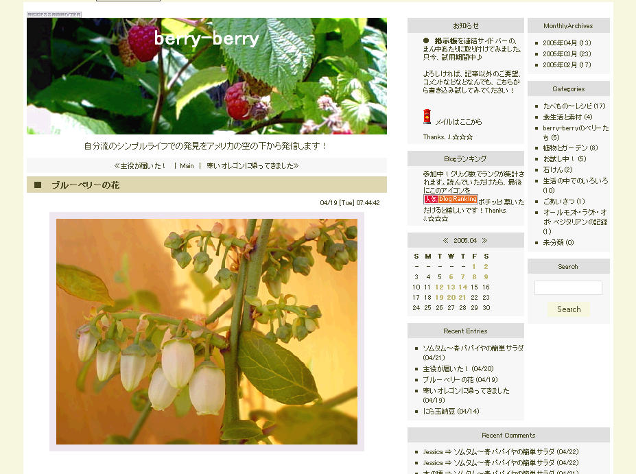 オレゴンでのスローな生活ぶり 料理のレシピからオーガニックの食材について考えてみたり 植物についてや育て方 健康に楽しく無理なくできる生活について 読者とのコミュニケ-ションを大切にしながら綴っています